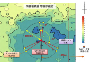 アンカーは海底の砂礫や泥をつかんで止めるタイプのものですが、海底堆積層の調査を行ってアンカーが外れないような場所の検討も進めています。これらは、第1基目の事例も参考にしながら、専門家が関わって十分な検討、シミュレーションを行っています。